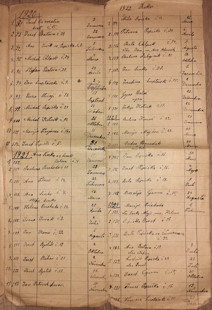 Nepodarilo sa nám zistiť, kto robil túto evidenciu. Skeny dokumentov nám zaslala Renáta Pipíšková.